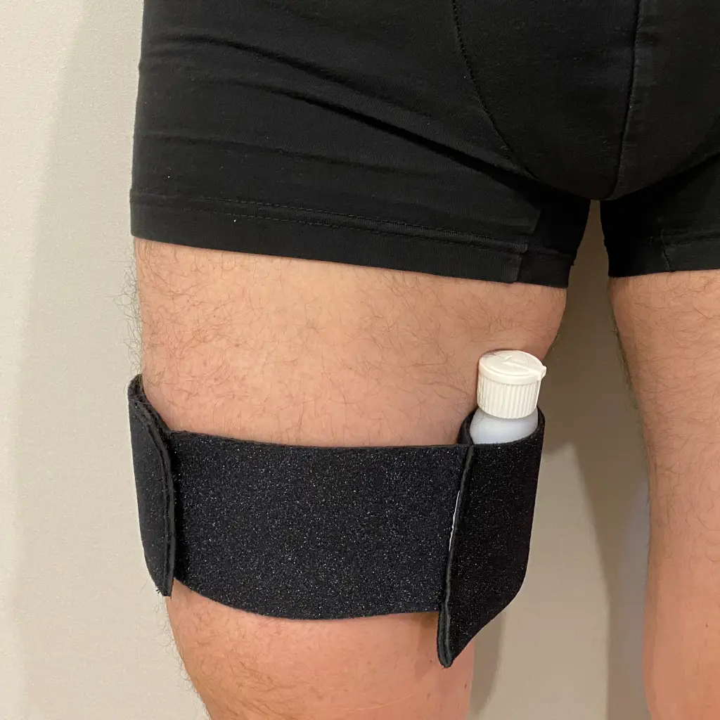 The Stash Leg Belt represents the ultimate solution for safely holding and hiding your bottle of synthetic urine. Designed to eliminate the anxiety of potential exposure or the embarrassment of a bottle slipping out from under your clothes, this accessory ensures your privacy remains intact at all times.